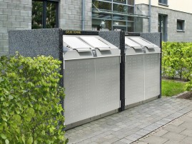 Vysoce kvalitní skříně se postarají nejen o příjemný vzhled, ale rovněž ochrání nádoby na odpad a kontejnery před povětrnostními vlivy a obtížným hmyzem. Vymezené vhazovací otvory zabraňují přeplnění a znečištění okolí. Tím zůstávají sběrná místa pro odpad čistá, uklizená a bez zápachu. A to při velmi tiché manipulaci.